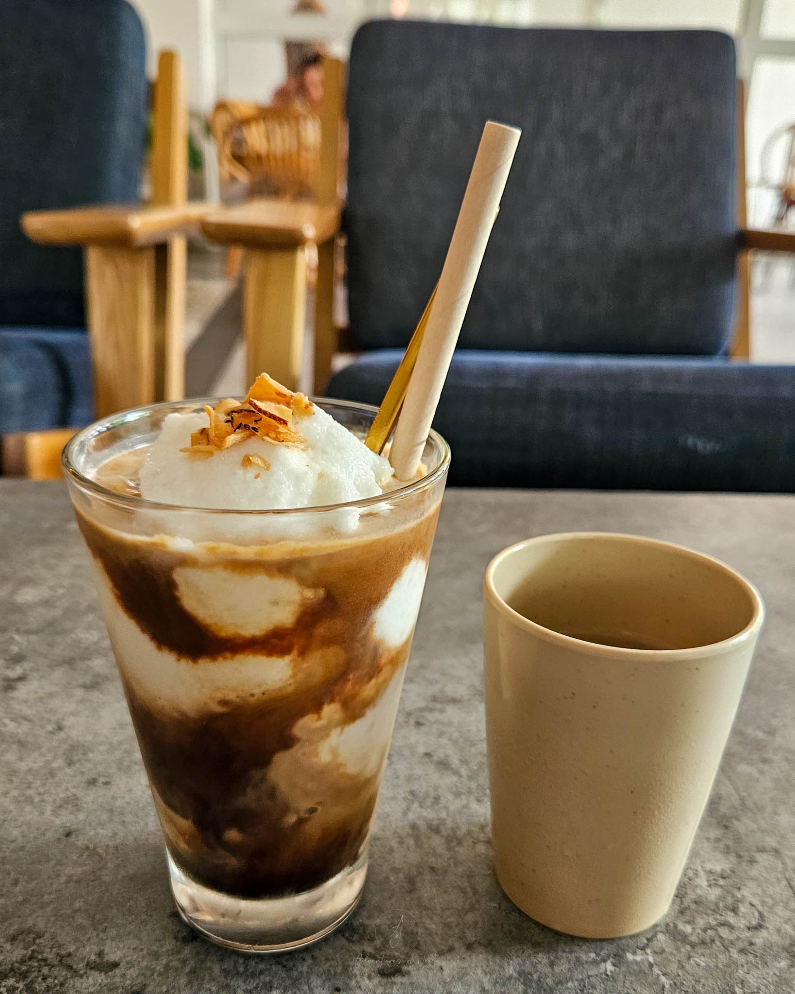 - 특징: 고소하고 시원한 코코넛 소르베와 진한 에스프레소가 만난 메뉴입니다. 콩카페의 시그니처로도 유명하죠. 스무디 제형이라 무더운 낮 시간에 '강력 추천'하는 메뉴입니다.